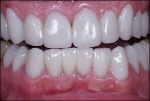 - Σε άλλη περίπτωση, η γέφυρα μπορεί να χρησιμοποιηθεί σαν προσωρινή προσθετική εργασία μέχρι την ολοκλήρωση της θεραπείας με οδοντικά εμφυτεύματα, όπως στο περιστατικό της επόμενης φωτογραφίας.